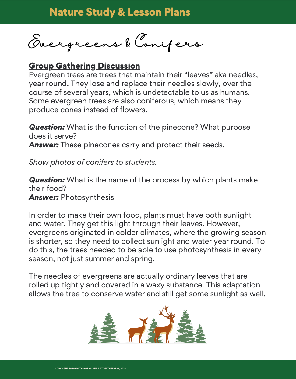 Our Evergreens & Conifers Adventure Club plans are specially designed for use in a group setting. These lessons are part of a series of lessons being released one by one over the coming months (2024). Eventually, they will be bundled with our Adventure Club Blueprint Course.
