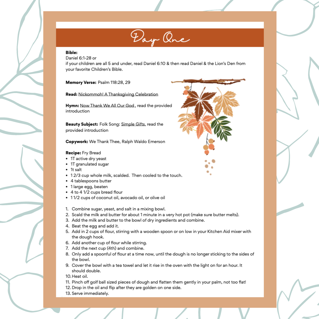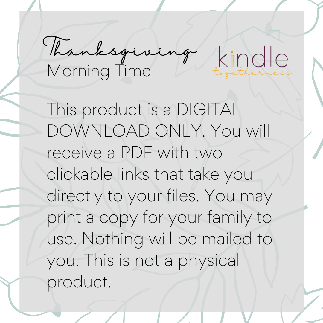 This 29 page, five day, open and go guide will have you and your children joyfully thanking God together.