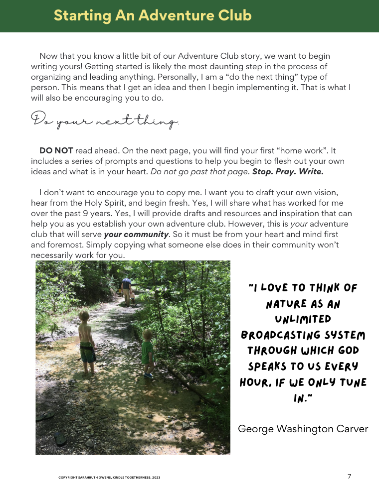 - Adventure Club Handbook Builder – walk through exactly how to set expectations, organize schedules, and design your member guide